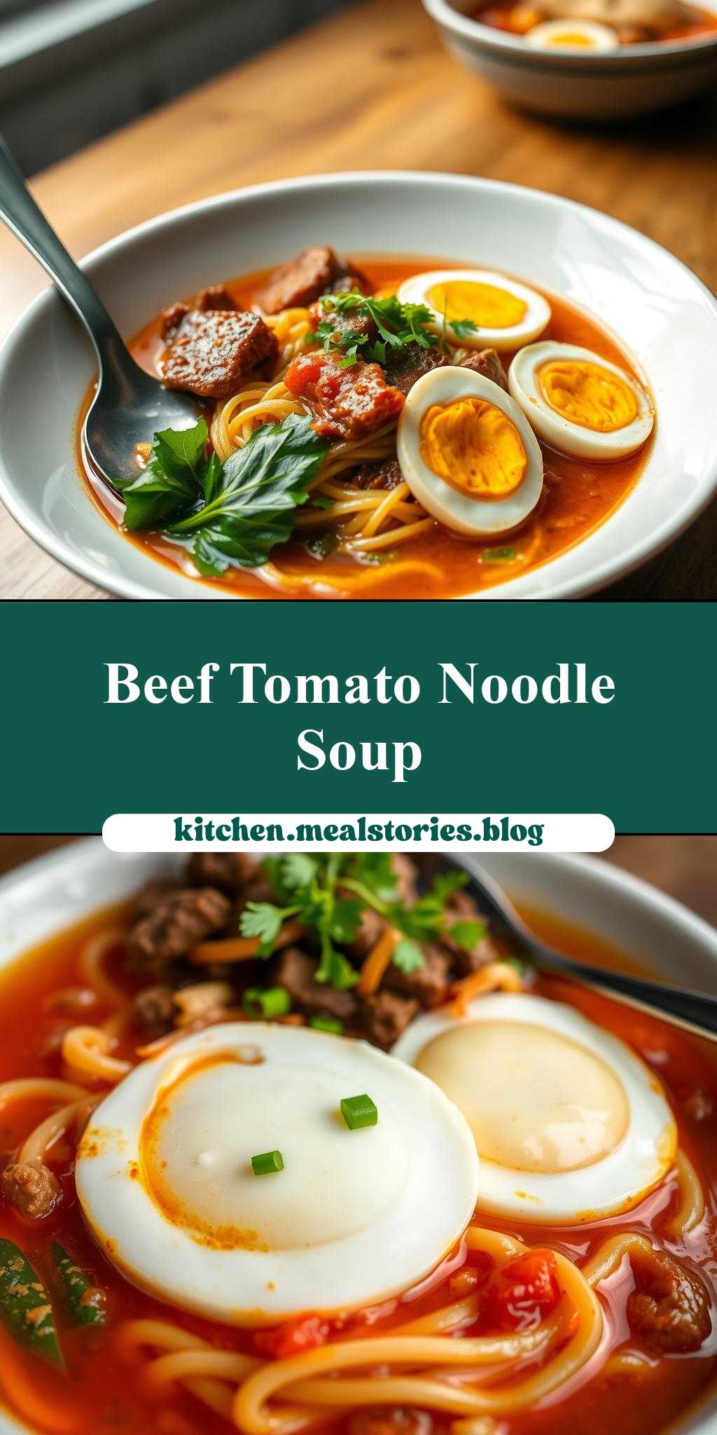 The magic of this Tomato and Beef Noodle Soup with Soft Eggs lies in its carefully selected ingredients. You’ll need high-quality beef (sirloin or ribeye work well), fresh tomatoes or a can of diced tomatoes for convenience, eggs for the soft, creamy addition, and your choice of noodles. For added depth, onions, garlic, and a mix of your favorite herbs and spices are essential. Practical substitutions can include using ground beef for a quicker cook time or swapping out noodles for a low-carb alternative like zucchini noodles. The beauty of this recipe is its flexibility, allowing you to make it your own with the ingredients you love and have on hand.
