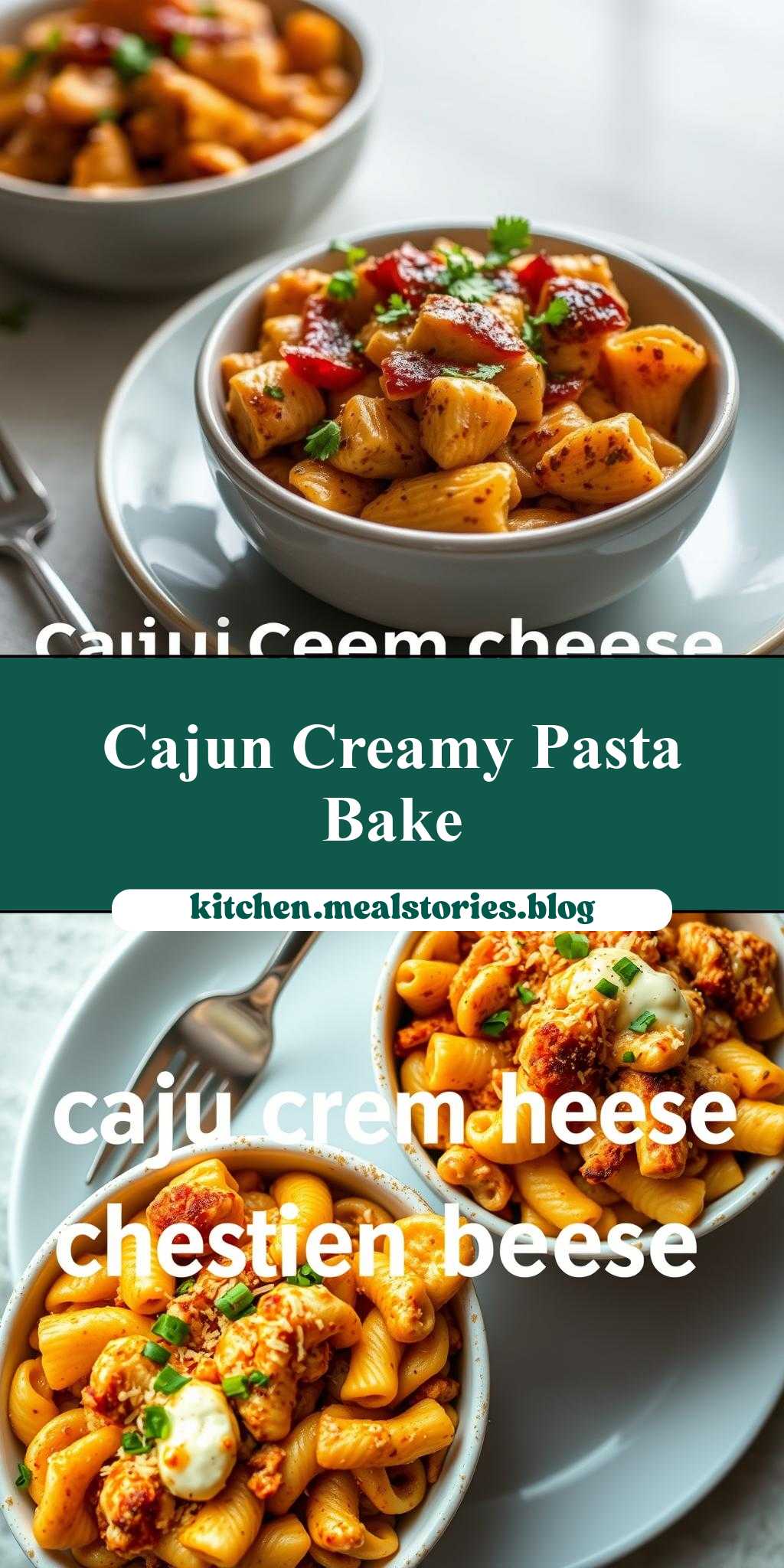 two bowls of cajun cream cheese chicken pasta bake with text overlay that reads cajun cream cheese chicken pasta bake