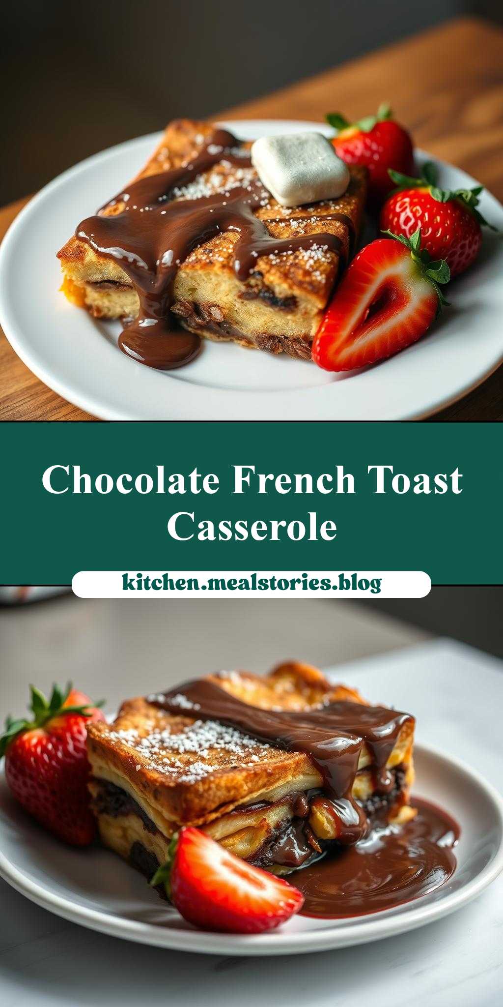 - Step 4: Bake the casserole in a preheated oven at 350°F (175°C) for about 20-25 minutes, or until it’s heated through and the top is lightly toasted. Serve warm, topped with fresh strawberries and drizzled with the warm chocolate sauce.