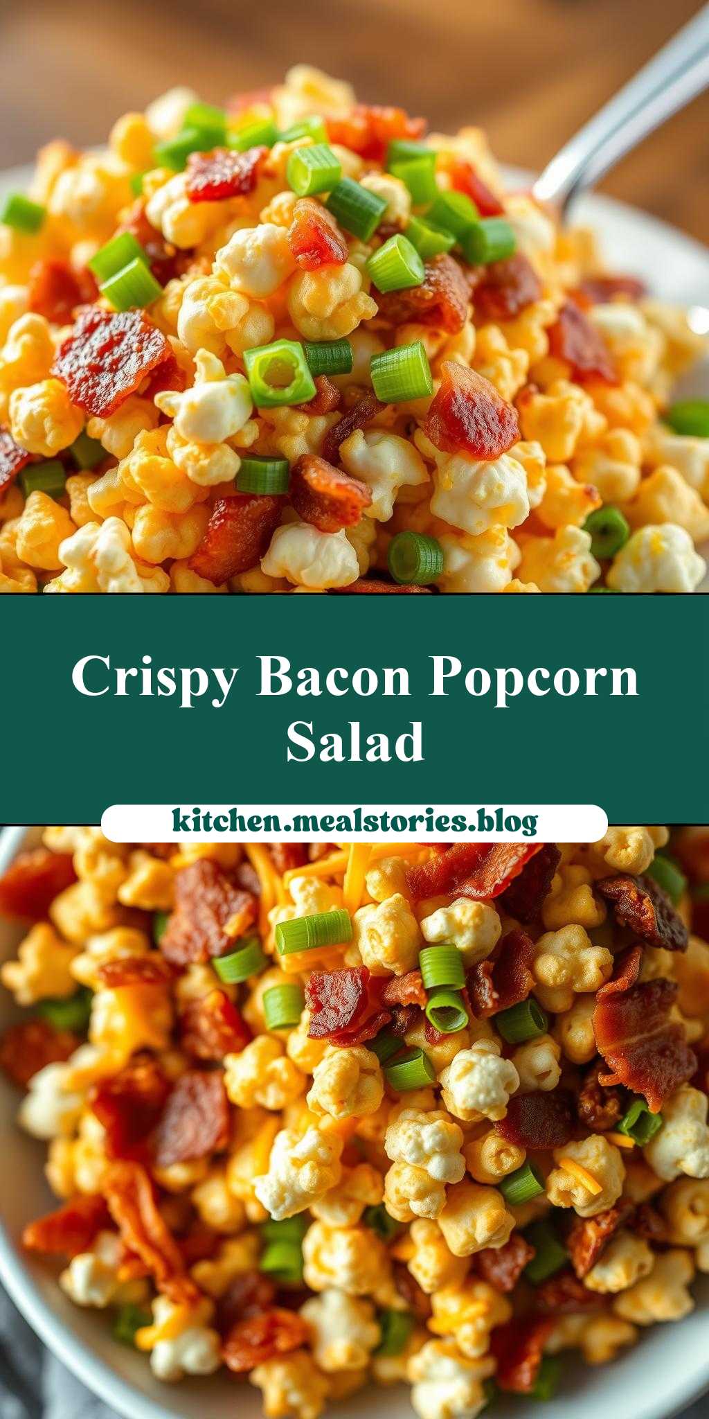 - Flavor balance and ingredient accessibility: The combination of salty bacon, sharp cheese, and the freshness of green onions, all mixed with the surprising crunch of popcorn, creates a flavor profile that’s both familiar and excitingly new. Plus, these ingredients are easily found in most supermarkets, making this dish accessible to anyone.