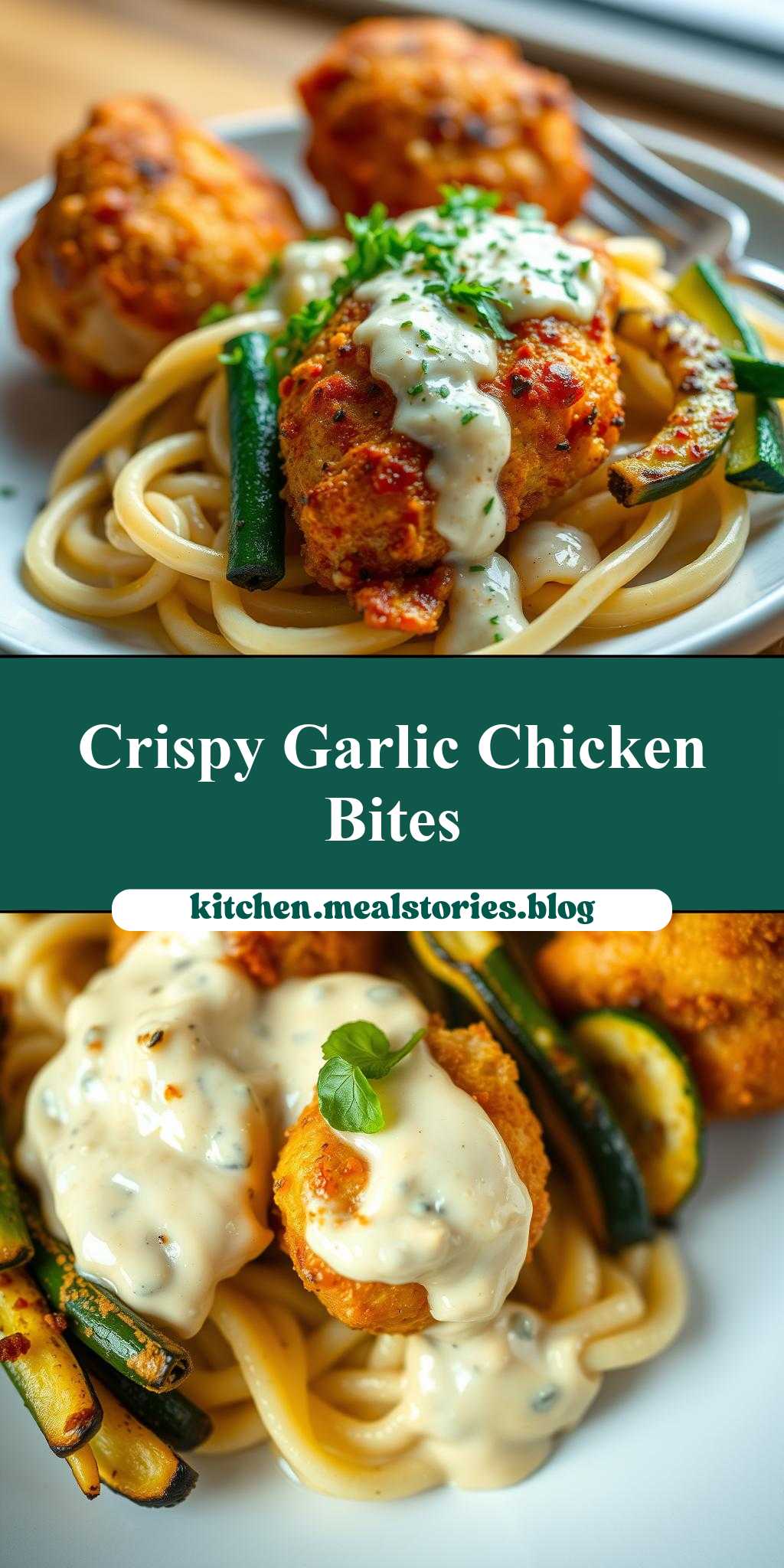 Garlic Chili Oil Chicken Bites & Cajun Alfredo with Charred Zucchini Twists