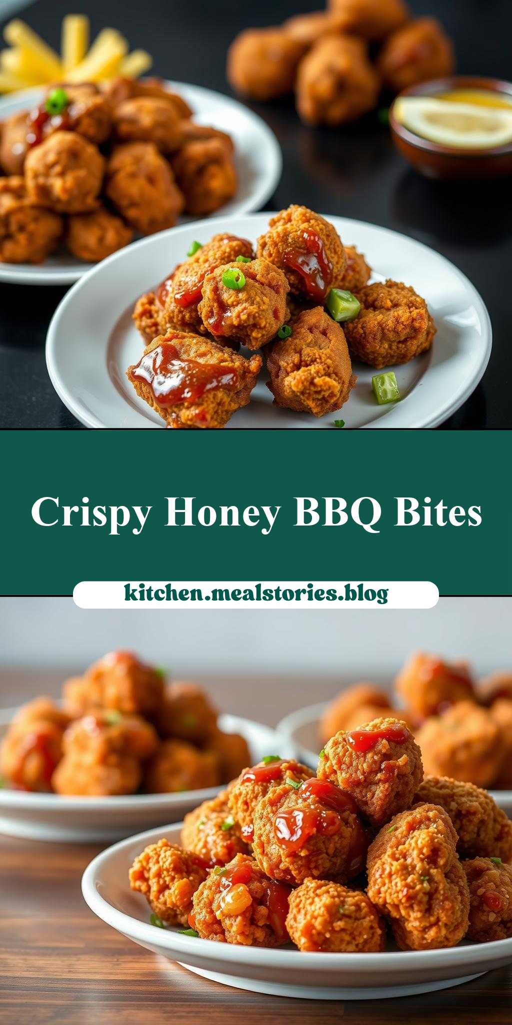 - Step 4: To serve, place the fried honey BBQ chicken bites on a plate or platter and garnish with chopped scallions or parsley, if desired. You can also serve with additional sauce on the side for dipping. Enjoy!