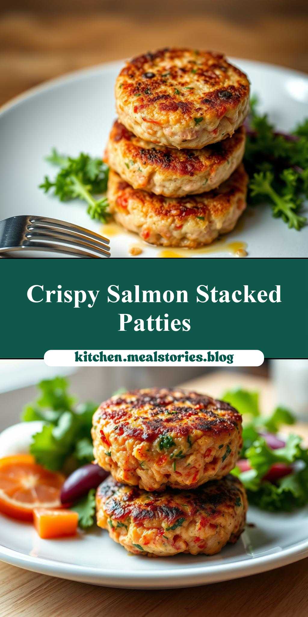 The crunch factor in this dish comes from the breadcrumbs in the salmon patties and the fresh crunch of the lettuce or other vegetables used in the stacking. To enhance the crunch, you can also top the dish with toasted breadcrumbs or chopped nuts. For the patties themselves, cooking them until they’re lightly browned on the outside will provide a nice textural contrast to the soft interior.