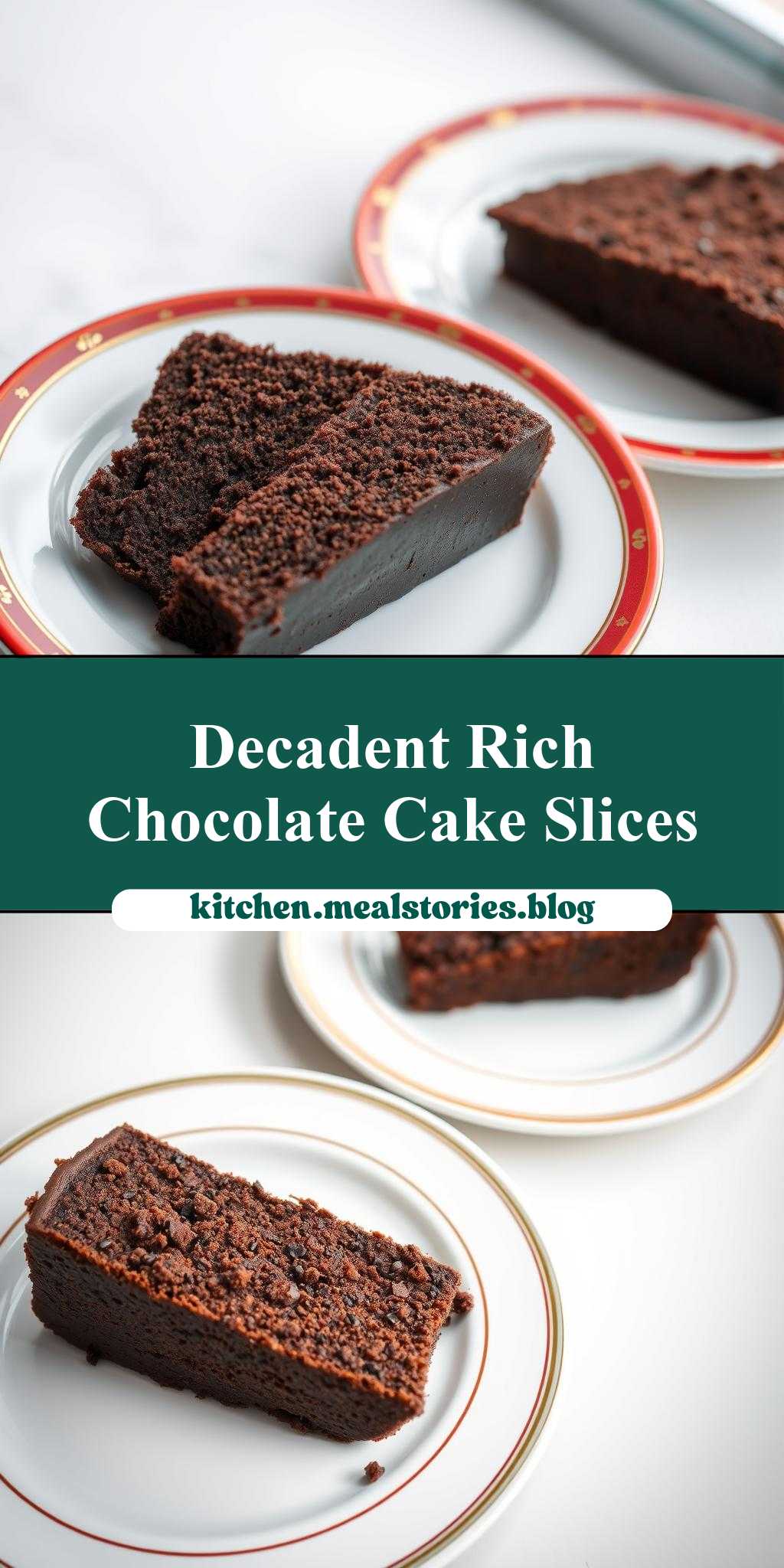 In conclusion, this recipe for two slices of chocolate cake on white plates with red and gold border around the edges is a must-try for anyone who loves chocolate cake. With its rich, moist texture and elegant presentation, this dessert is sure to impress your friends and family. Whether you’re a novice baker or an experienced chef, this recipe is easy to follow and requires minimal ingredients and equipment. So why not give it a try today, and see just how easy it is to create a stunning and delicious dessert that’s sure to become a favorite.