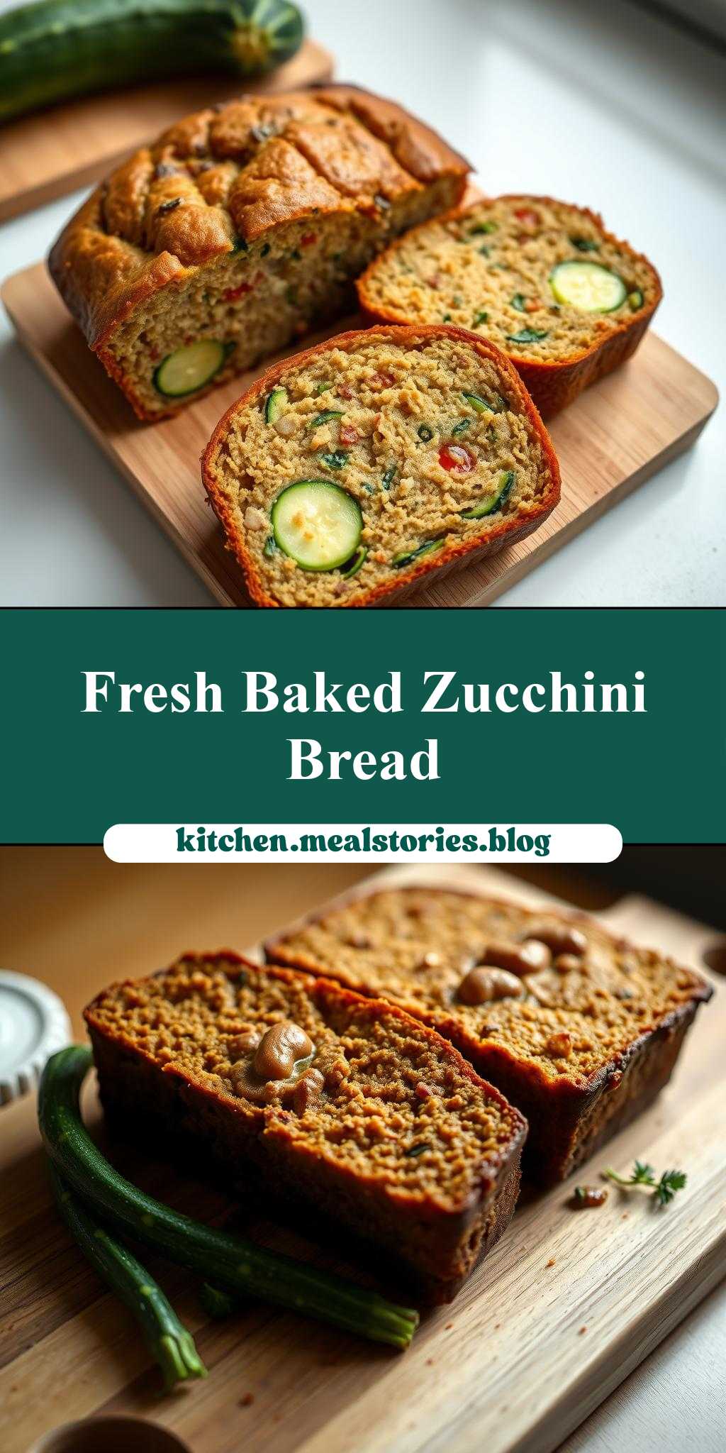 two pictures of zucchini bread on a cutting board