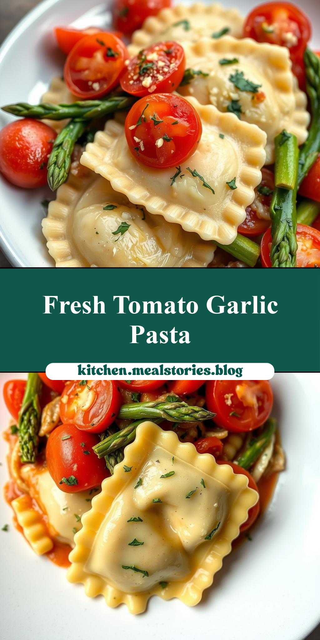 What makes a perfect spring dinner? Fresh asparagus and juicy tomatoes come together in this quick and easy homemade ravioli recipe, infused with aromatic garlic and herbs, perfect for a weeknight dinner. Save this idea for a delicious family favorite meal.