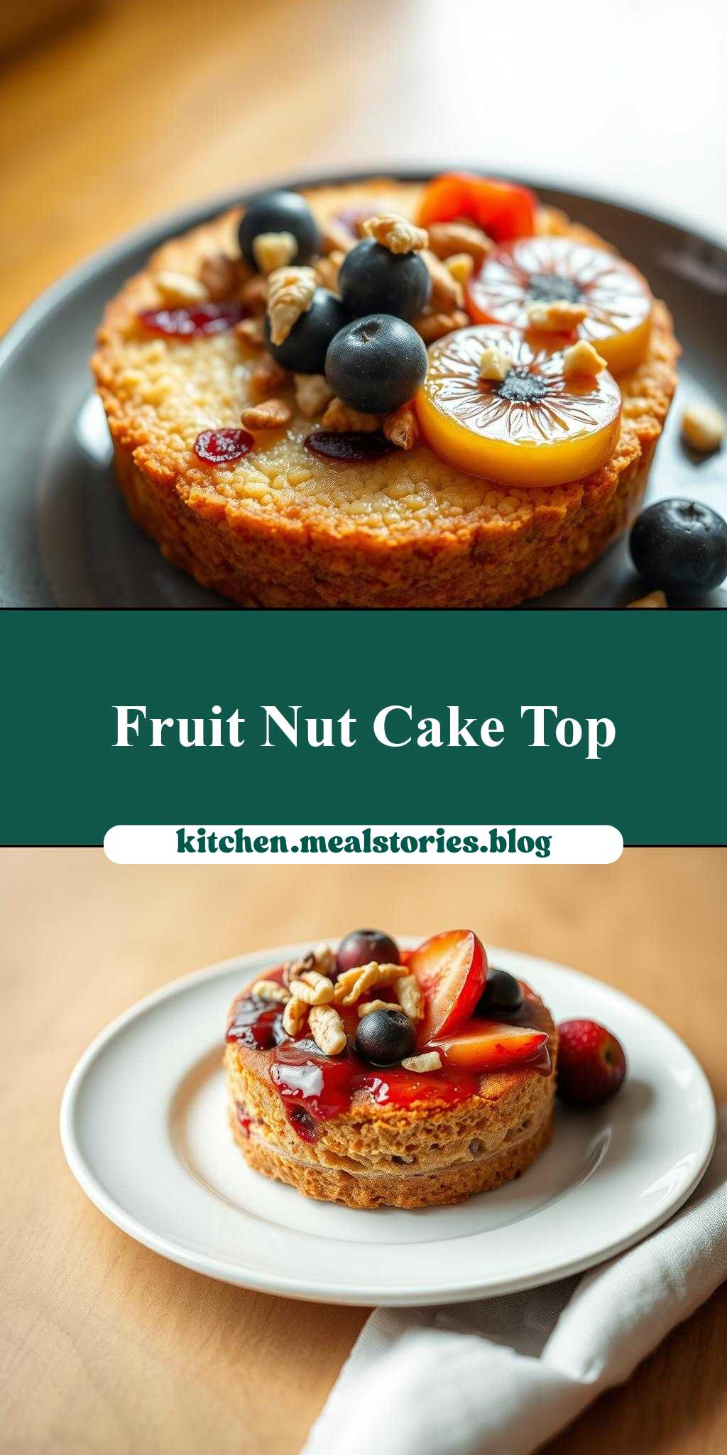 - Step 3: Once the cake is baked, allow it to cool slightly before topping it with your fruit and nuts. You can arrange the fruit in a pattern or simply scatter it across the top, depending on your desired presentation. Drizzle with a bit of honey or sprinkle with powdered sugar for added sweetness and visual appeal.