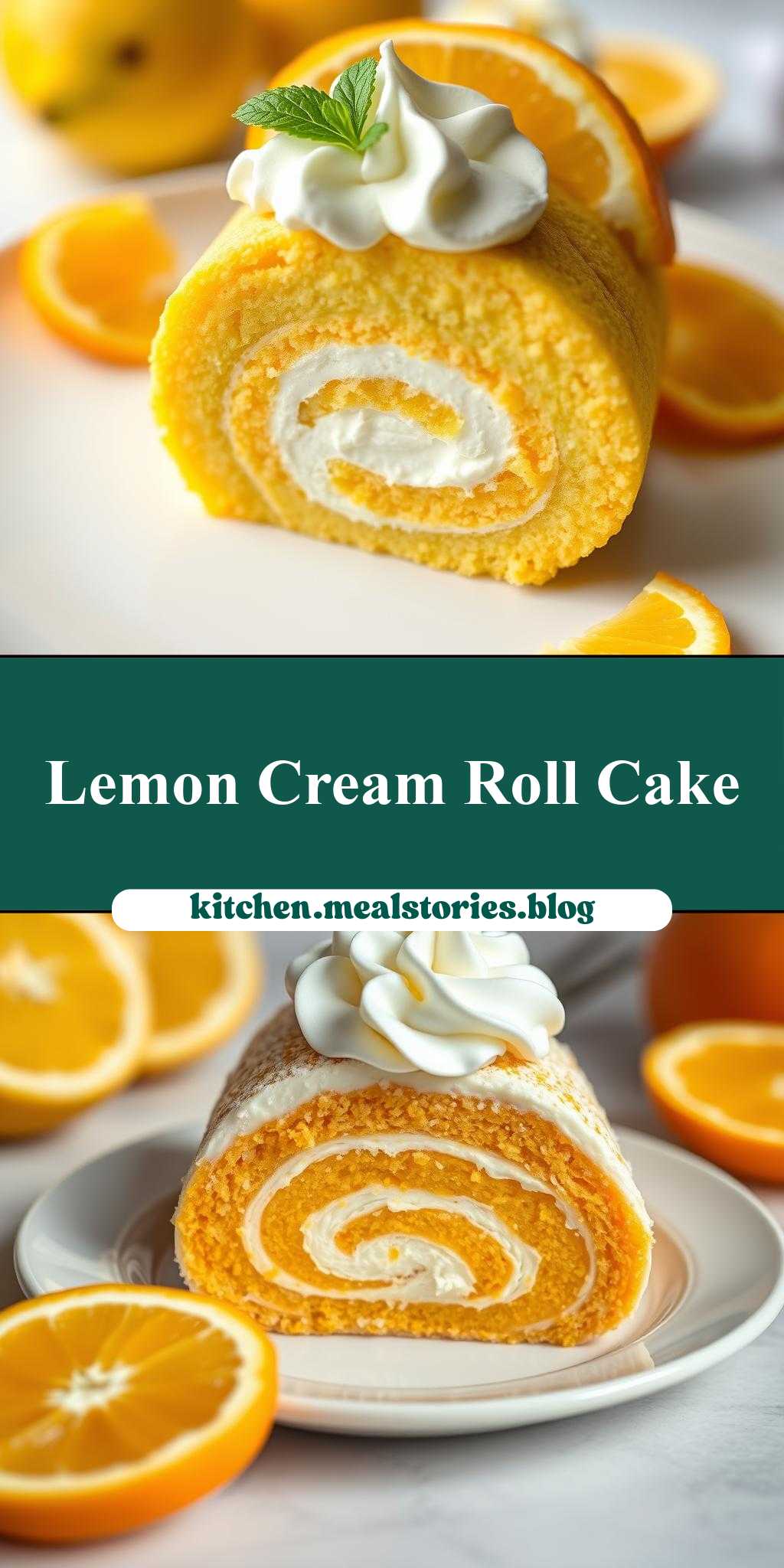 - Step 4: For the final touches, whip heavy cream with sugar until stiff peaks form. Slice the chilled roll cake and top each slice with a dollop of whipped cream and segments of orange.