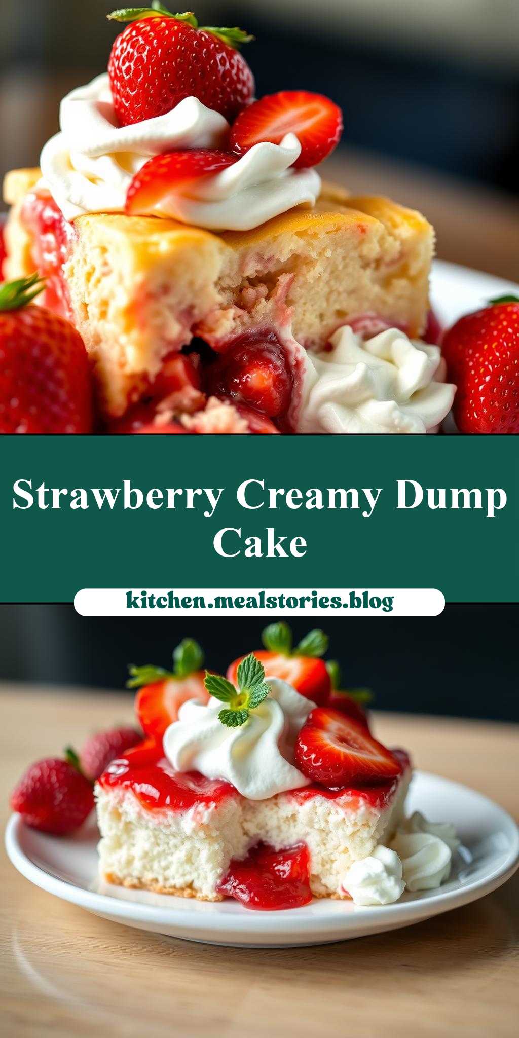 The main ingredients in this recipe include a strawberry cheesecake mix, canned strawberries in syrup, melted butter, and whipped cream. For the cheesecake mix, ensure you choose a high-quality brand that includes the necessary ingredients for a rich cheesecake flavor. The canned strawberries add natural sweetness and a burst of strawberry flavor, while the melted butter helps to create a golden, crunchy crust on the dump cake. Whipped cream and fresh strawberries are used for topping, adding a light, airy texture and a pop of fresh flavor. Practical substitutions could include using fresh strawberries cooked down into a syrup if canned strawberries are not available, or replacing the cheesecake mix with a homemade equivalent, though this would increase the preparation time and complexity of the recipe.