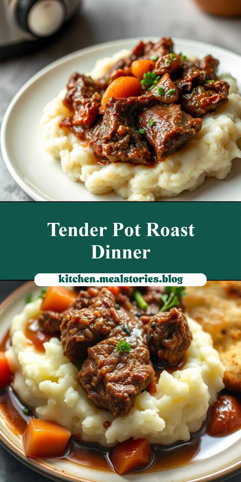 This dish is all about tender comfort food. The pot roast should be fall-apart tender, and the mashed potatoes should be smooth and creamy. If you prefer a bit of crunch, consider adding some sautéed vegetables like broccoli or green beans to the dish, or serve it with a side of crispy roasted vegetables.